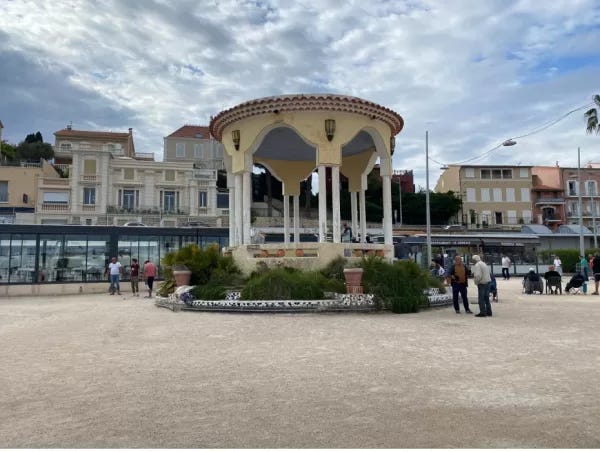 As I get further along and leave the center of Bandol behind me, I come upon the beautiful park where the townspeople play the famous game of boule.