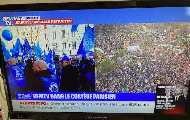 As I mentioned, when I was studying in France, there were huge protests for months against President Macron’s pension reform. Sometimes, major streets were closed to allow for the cortège to walk from Place d’Italie (not far from where I lived) to the Bastille.