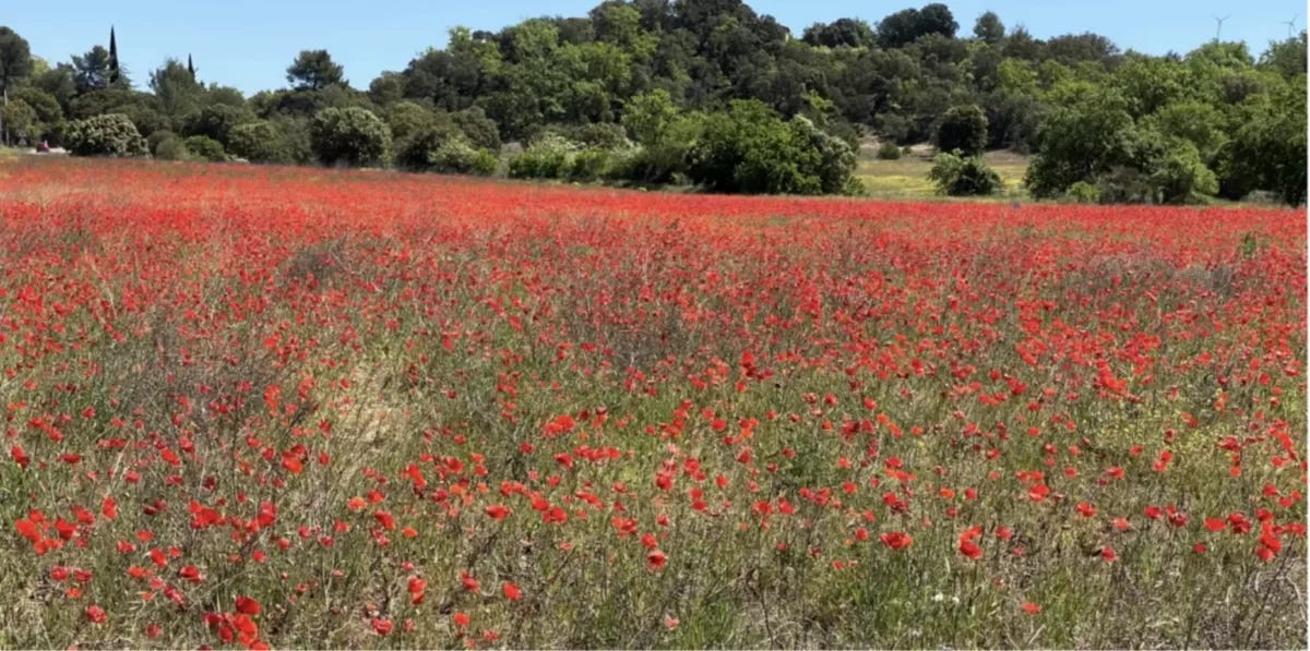In front of “La Cavale” on my way to Cucuron. They are just in front. These fields kept our eyes alive for about one month. It was exciting to see and I sometimes would just go out for a drive to look for more poppy fields. It is so beautiful around here.