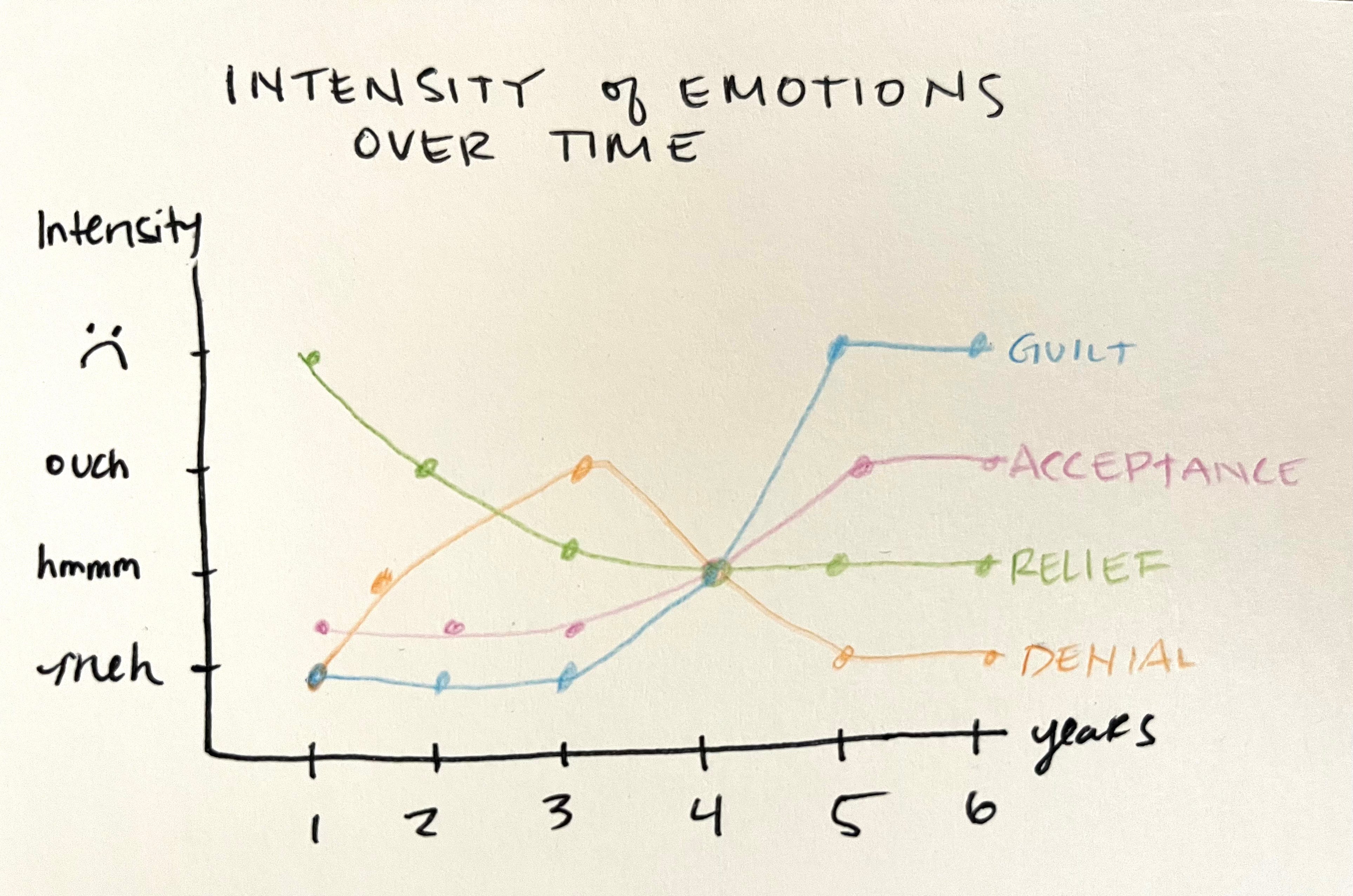 I'm currently stuck at "guilt," hoping to achieve "acceptance."