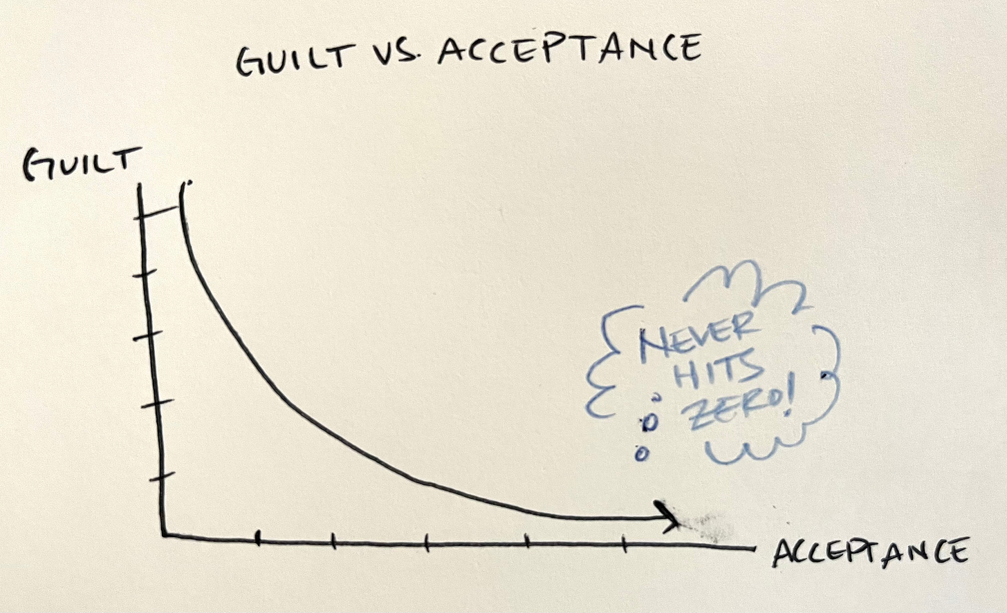But even if I am indeed acting from a place of acceptance, I sure don’t feel it. That’s why I’ve reduced the “acceptance” emotional stage to a half stage, 0.5. Acceptance is an asymptote emotion, you can get closer and closer but it’s impossible to ever totally arrive.