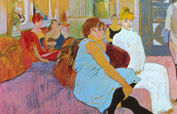1. Au Salon de 6 Rue des Moulins by Toulouse Lautrec via Wikimedia Commons