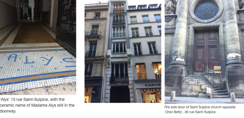 On a rather funny and less melancholic note, the side door of the Church of Saint-Sulpice on the left bank stands right across from ‘Chez Betty’, the other brothel with ‘Alys’ of the eponymous street.
