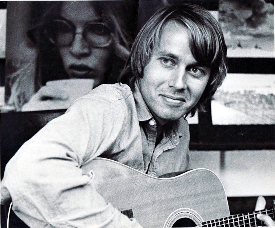 Early 1970s playing my Guild D40 in front of an exhibition of my early photographs at an art show near Park City, Utah.