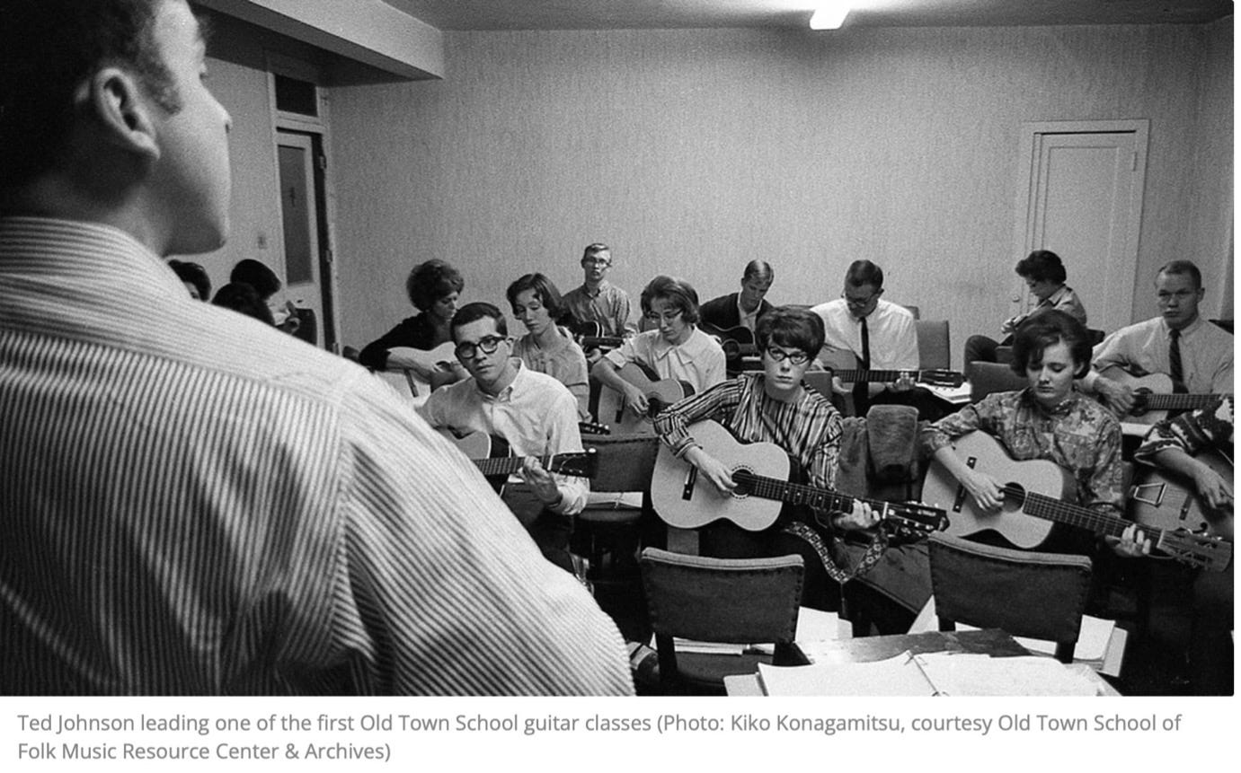 I formed a small folk group and moved to Old Town after high school. Unlike Bloomfield, I was more interested in contemporary folk music and the tight harmonies of the Kingston Trio or Peter, Paul & Mary. I wanted to play like Judy Collins, Joan Baez, Bob Dylan, and Joni Mitchell, so I enrolled at the original Old Town School of Folk Music.