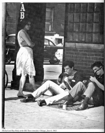 Mike and Roy Ruby playing for nickels and dimes out on the street in Old Town, 1963. Though Bloomfield came from a wealthy Chicago family