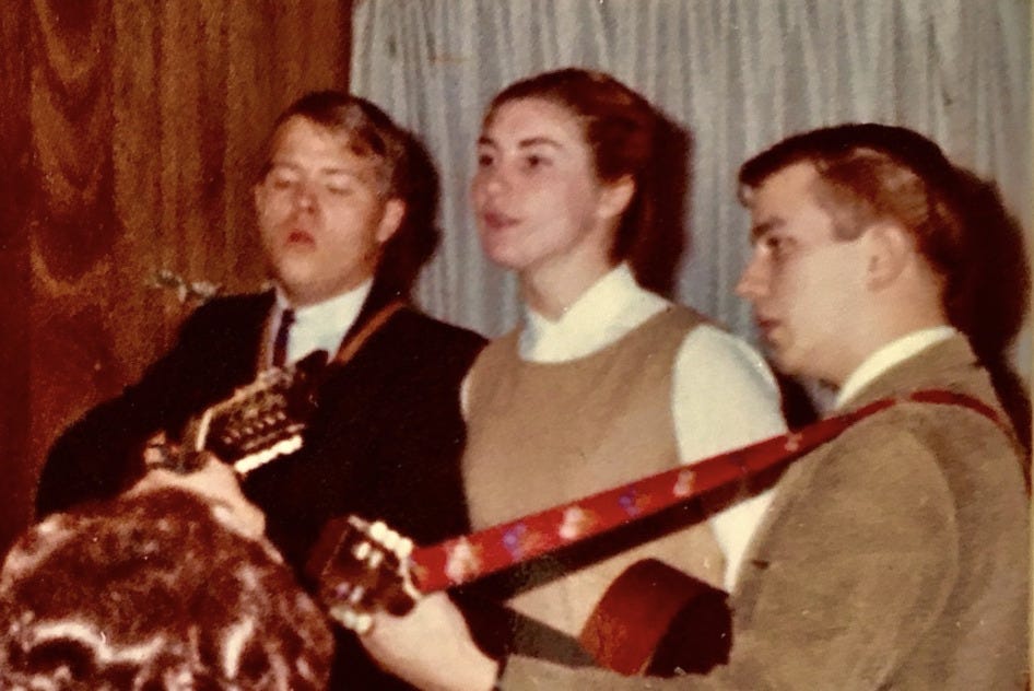 With Brian and Laurie Nischke in the Glenbrook North High School folk group in 1963, when we took first place at the North Shore Folk Music Festival